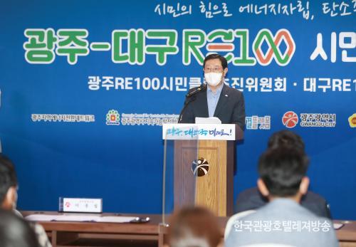 À̿뼷 ½ÃÀåÀº ¡°±¤ÁÖ-´ë±¸ RE100 ½Ã¹ÎŬ·´Àº ±âÈÄÀ§±â ±Øº¹°ú ¿¡³ÊÁö ¹®Á¦ ÇØ°á¿¡ ½Ã¹ÎµéÀ» Çõ½ÅÀÇ ÁÖü·Î ¼¼¿ö³»´Â °è±â°¡ µÉ °ÍÀÌ´Ù¡±¸ç ¡°¿¡³ÊÁö¸¦ ȼ®¿¬·á ±â¹Ý¿¡¼ ž籤°ú dz·Â µî ģȯ°æ ½ÅÀç»ý¿¡³ÊÁö·Î ¹Ù²Ù´Â RE100 Ä·ÆäÀο¡ ±¤ÁÖ°¡ Àû±Ø µ¿ÂüÇϰí ÈûÀ» º¸Å°ڴ١±°í ¸»Çß´Ù.