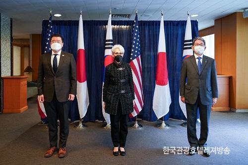 [È£ÅÚ°ü±¤·¹Á®½Å¹®=Á¤ÁöÀ± ±âÀÚ] ¹Ì ±¹¹«ºÎ°¡ 18ÀÏ(ÇöÁö½Ã°£) ¹Ì±¹°ú ÀϺ» ¿Ü±³Â÷°ü ȸ´ãÀ» °®°í ÇѹÌÀÏ 3±¹ Çù·ÂÀÇ Á߿伺À» ÀçÈ®ÀÎÇß´Ù°í ¹àÇû´Ù.