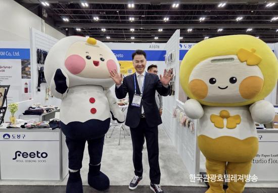 ¿À¾ð¼® µµºÀ±¸Ã»Àå(°¡¿îµ¥)ÀÌ ¼¼°èÇÑÀκñÁî´Ï½º´ëȸ Çà»çÀå ³» µµºÀ±¸ ±â¾÷Àü½Ã°ü¿¡¼­ ±¸(Ï¡) ´ëÇ¥ ij¸¯ÅÍ ÀººÀÀÌ‧ ÇкÀÀÌ¿Í »çÁøÀ» Âï°í ÀÖ´Ù.