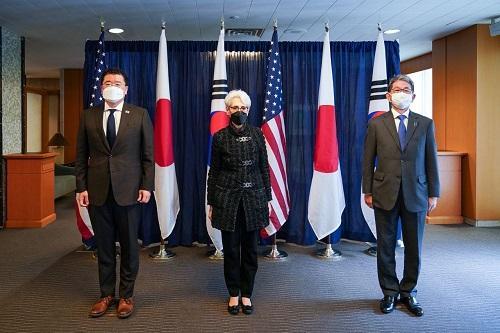 [È£ÅÚ°ü±¤·¹Á®½Å¹®=Á¤ÁöÀ± ±âÀÚ] ¹Ì ±¹¹«ºÎ°¡ 18ÀÏ(ÇöÁö½Ã°£) ¹Ì±¹°ú ÀϺ» ¿Ü±³Â÷°ü ȸ´ãÀ» °®°í ÇѹÌÀÏ 3±¹ Çù·ÂÀÇ Á߿伺À» ÀçÈ®ÀÎÇß´Ù°í ¹àÇû´Ù. ¹ÌÀÏ ¿Ü±³Â÷°üÀº À̳¯ ¿ÀÈÄ ¿ö½ÌÅÏDC¿¡¼­ ¸¸³ª ȸ´ãÀ» °¡Á³´Ù. ÀϺ»ÀÌ ±èâ·æ °æÂûûÀåÀÇ µ¶µµ¹æ¹®À» ¹®Á¦»ïÀ¸¸ç¡¦